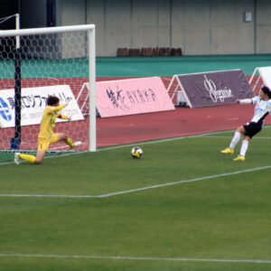 あっさりゴール前にパスを入れられ、キーパーと相手選手が1対1になる。